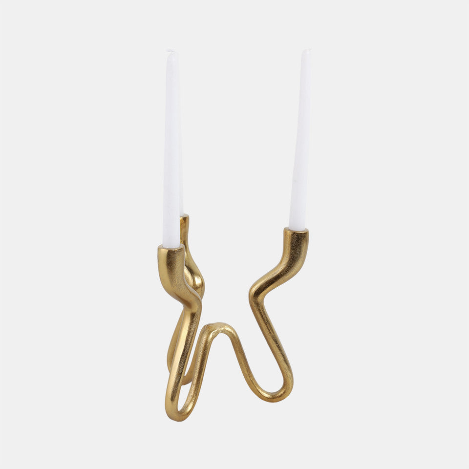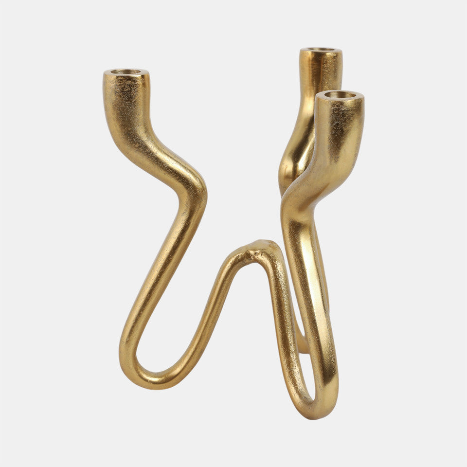Playful curves meet modern minimalism. The Loopy Sculptural Candle Holder is crafted in a luminous gold finish, designed to hold three taper candles in an artful, asymmetrical form. Measuring 10” x 9”, its fluid silhouette doubles as a statement sculpture, whether styled with candles or displayed on its own. A contemporary centerpiece that adds both warmth and intrigue to any space.