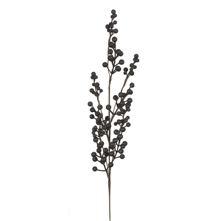 A tall spray of matte midnight-blue berries, standing 28” high, perfect for creating bold winter arrangements. Its deep hue adds a modern, moody contrast to ivory tones, greenery, or metallic décor, making it a versatile accent for both festive styling and year-round elegance.